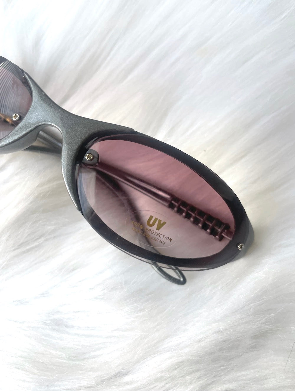 The classic Y2K look! Vintage plastic wrap around sunglasses with pink-ish lenses and silver frame. Sunglasses are deadstock and haven't been worn but do have some small signs of wear/age from storage.