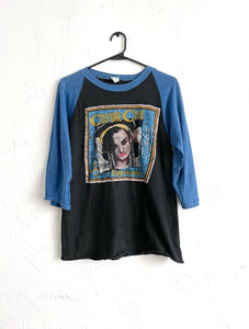 Vintage 80s Distressed Black and Blue Culture Club Kissing to be Clever Baseball Tee